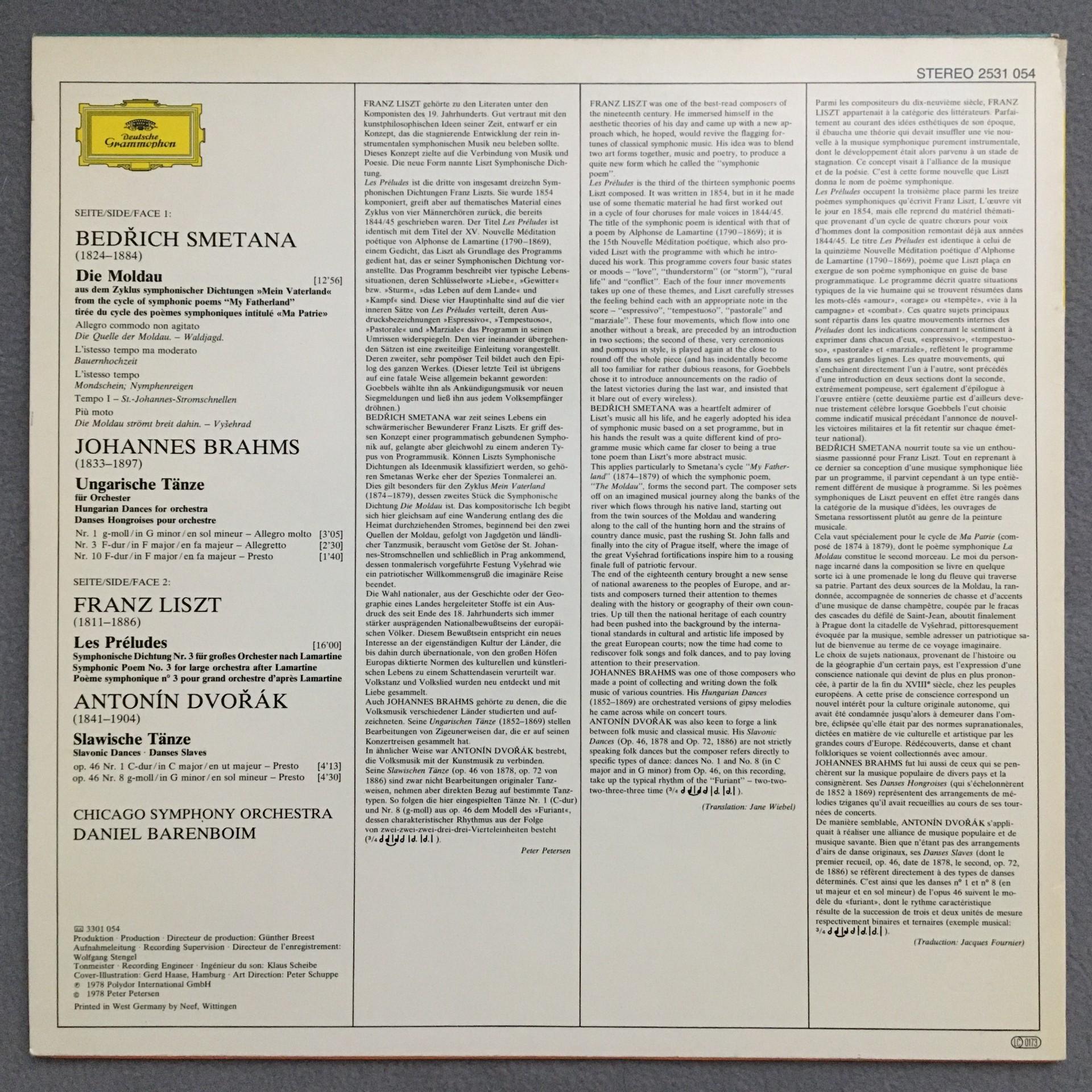 M932 Smetana Die Moldau Dvorak Slavonic Dances Barenboim DGG 2531 054 Stereo