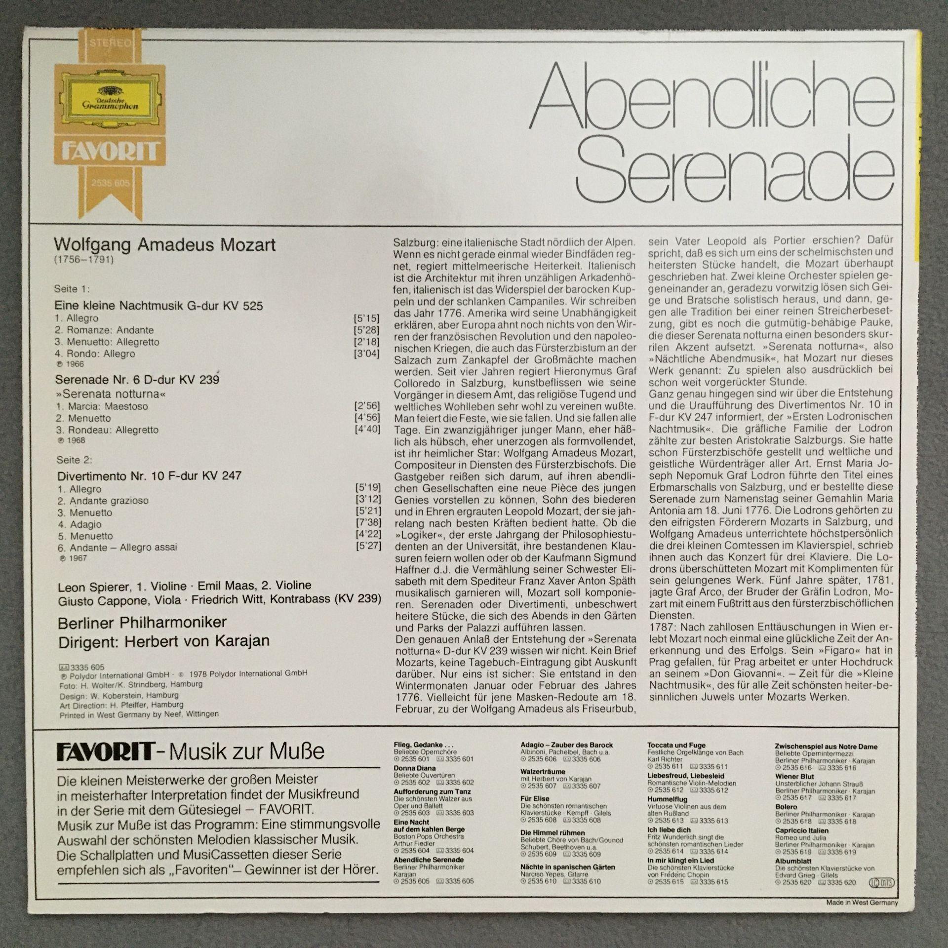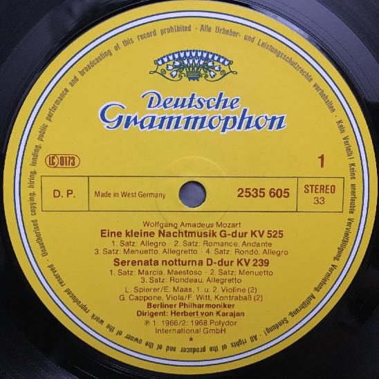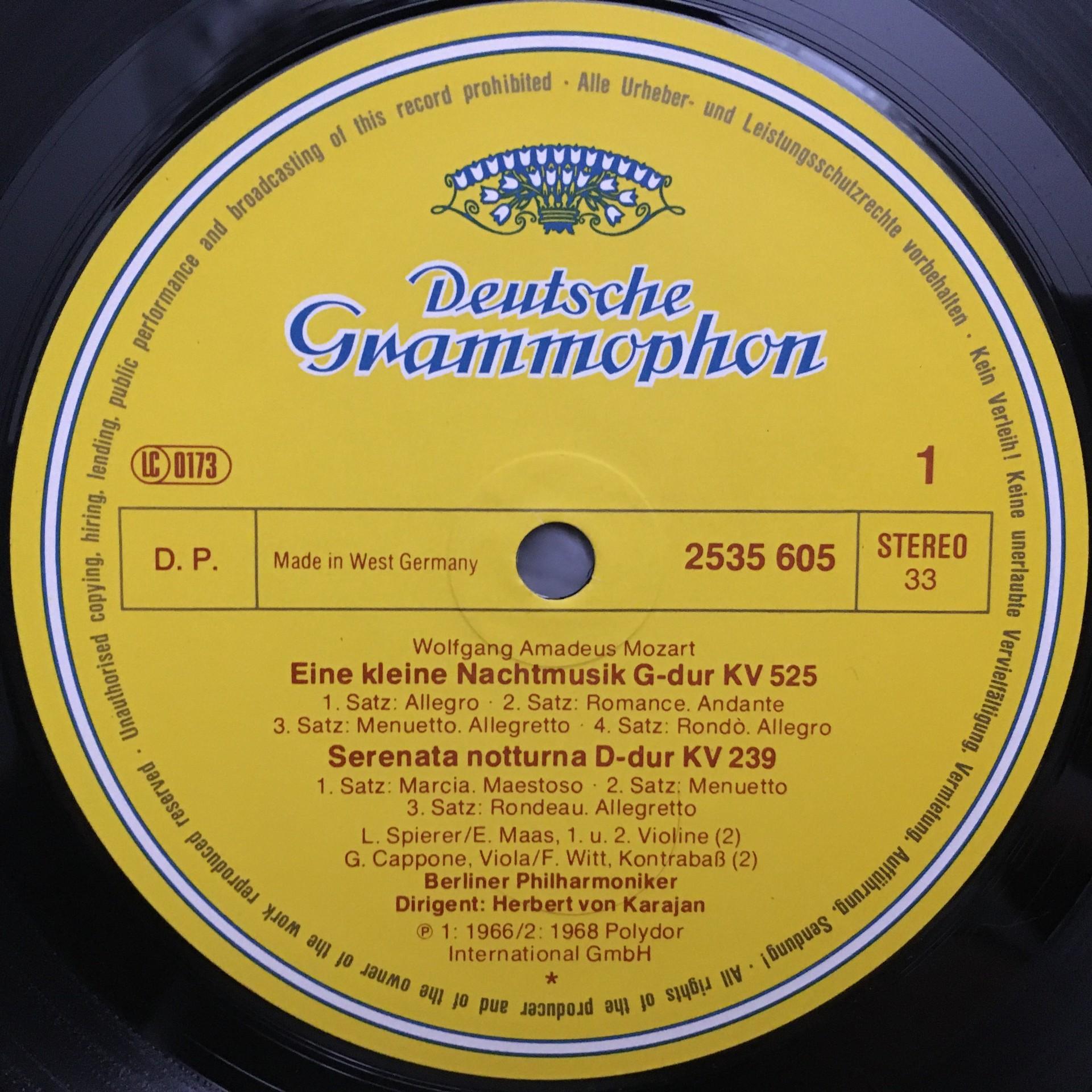 M949 Mozart A little Night Music Serenade Karajan BPO DGG 2535 605 Stereo