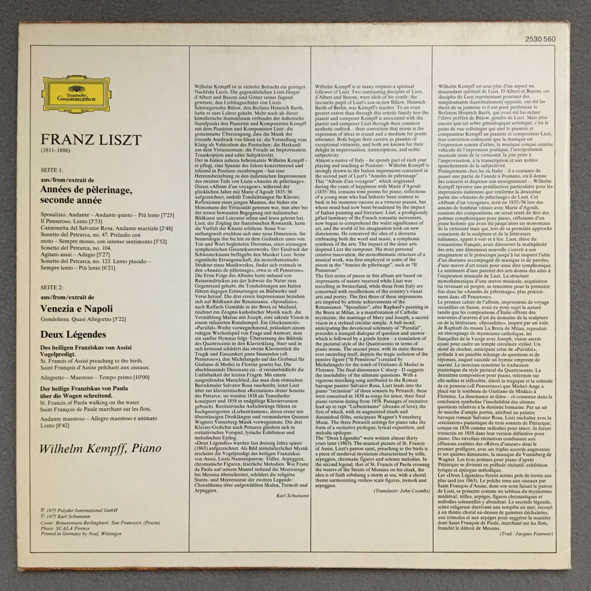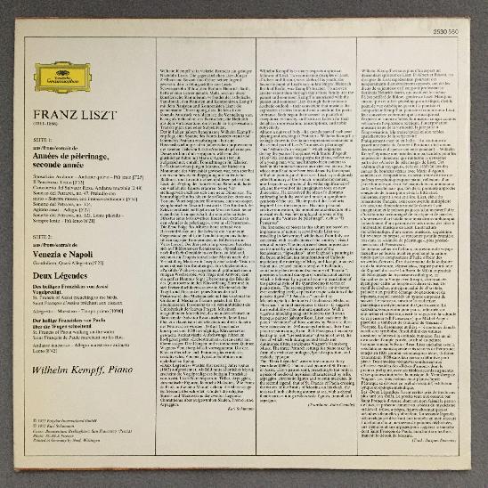 M957 Liszt Annees de Pelerinage Deux Legendes Kempff Piano DGG 2530 560 Stereo