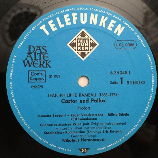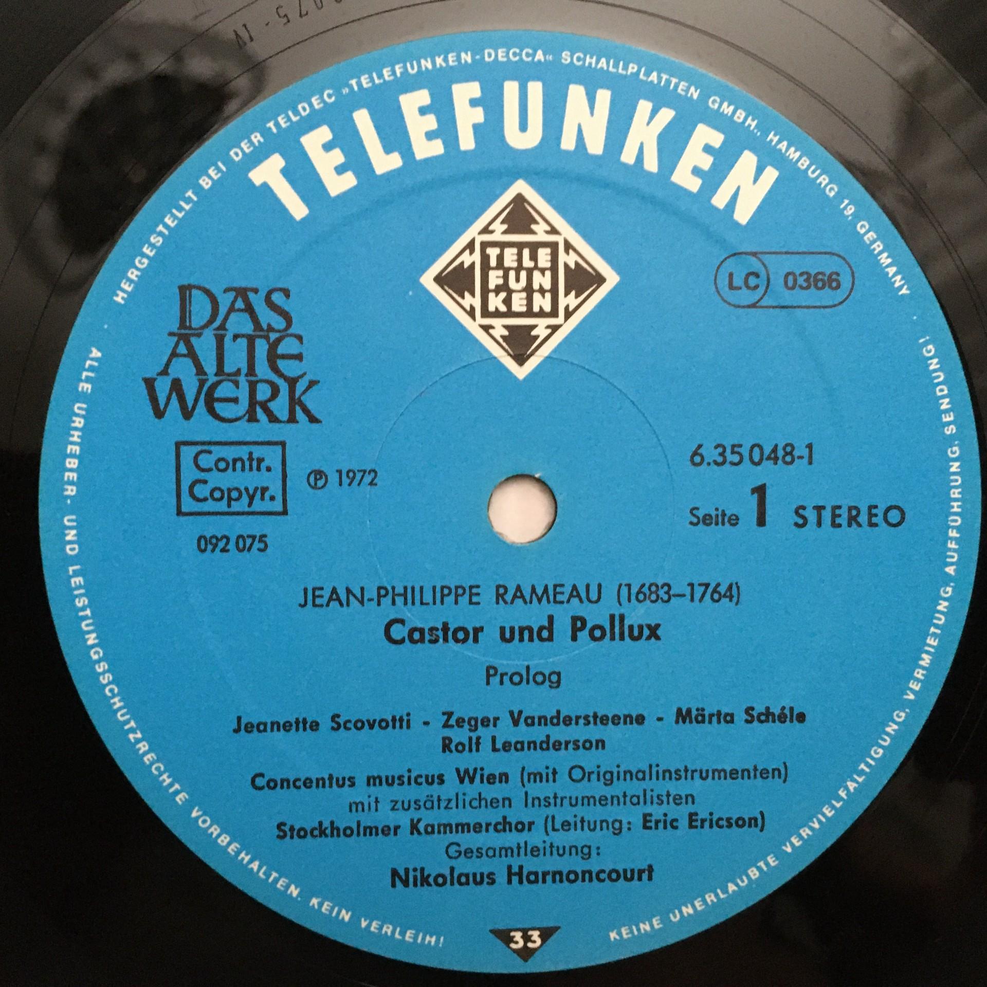 D411 Rameau Castor & Pollux Harnoncourt 4LP Telefunken 6.35048 GK Stereo