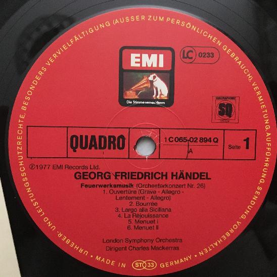 R228 Handel Fireworks Music Concertos Mackerras EMI 1C 065-02 894 Q Quadro