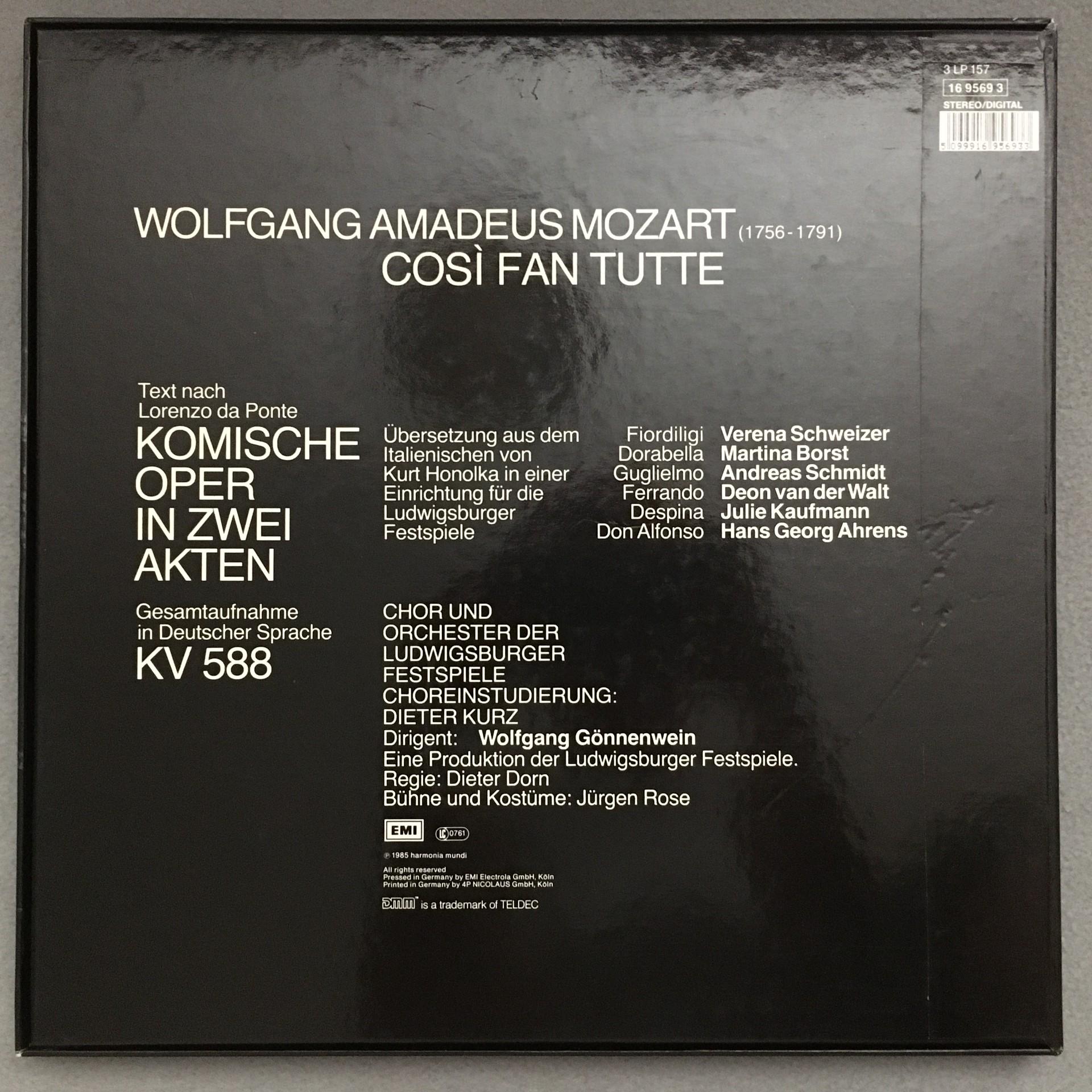D414 Mozart Cosi fan Tutte Schweizer Gönnenwein 3LP HM 19 9569 3 Digital Stereo
