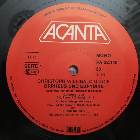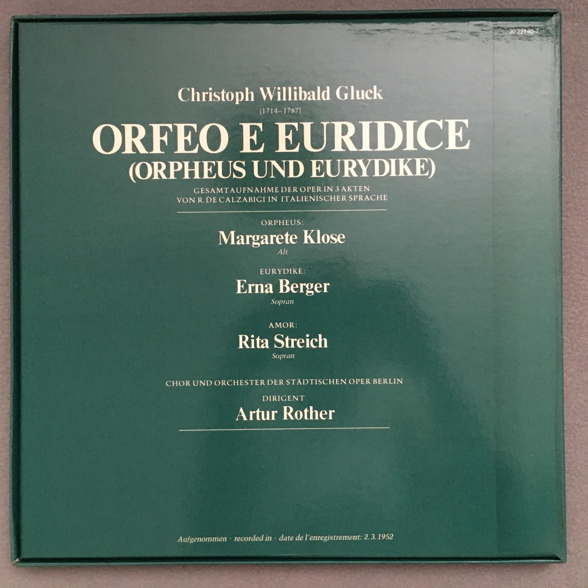 D416 Gluck Orfeo & Eurydice Streich Klose Rother 3LP Acanta 30 221 40-7