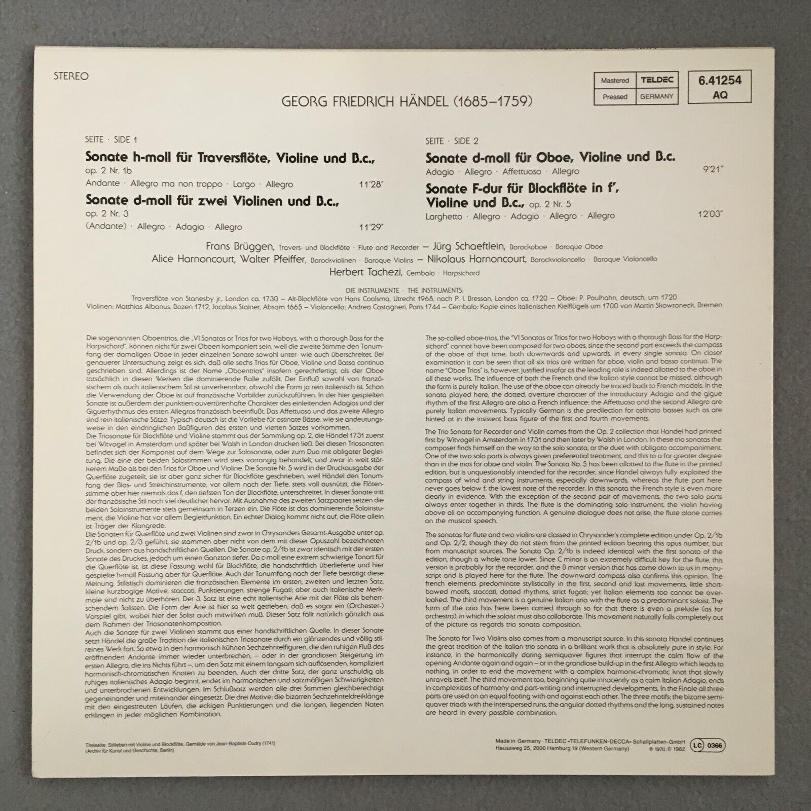 P430 Handel Trio Sonatas Brüggen Harnoncourt Telefunken 6.41254 AQ Stereo