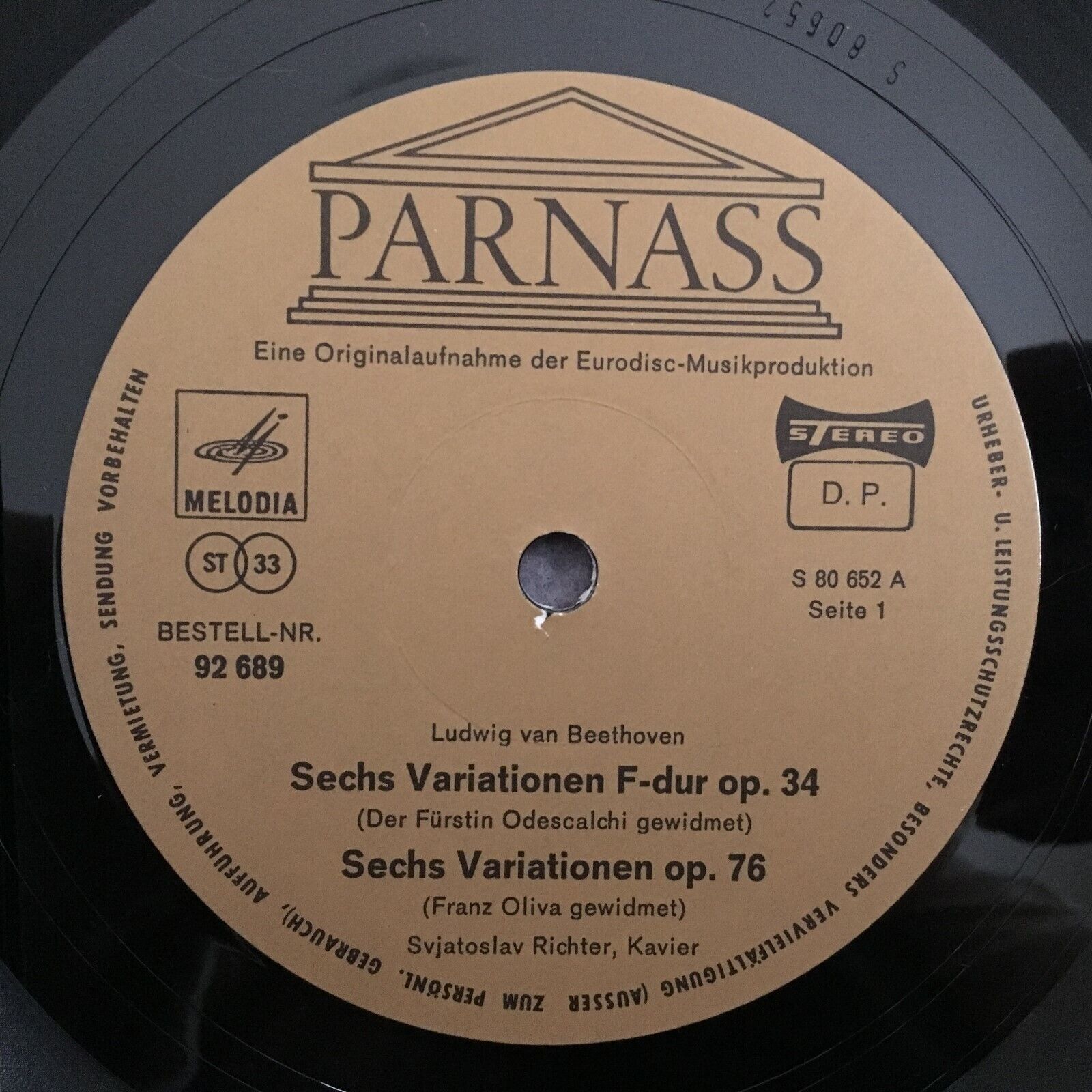X282 Beethoven Variations Eroica Richter Parnass 92 689 Stereo