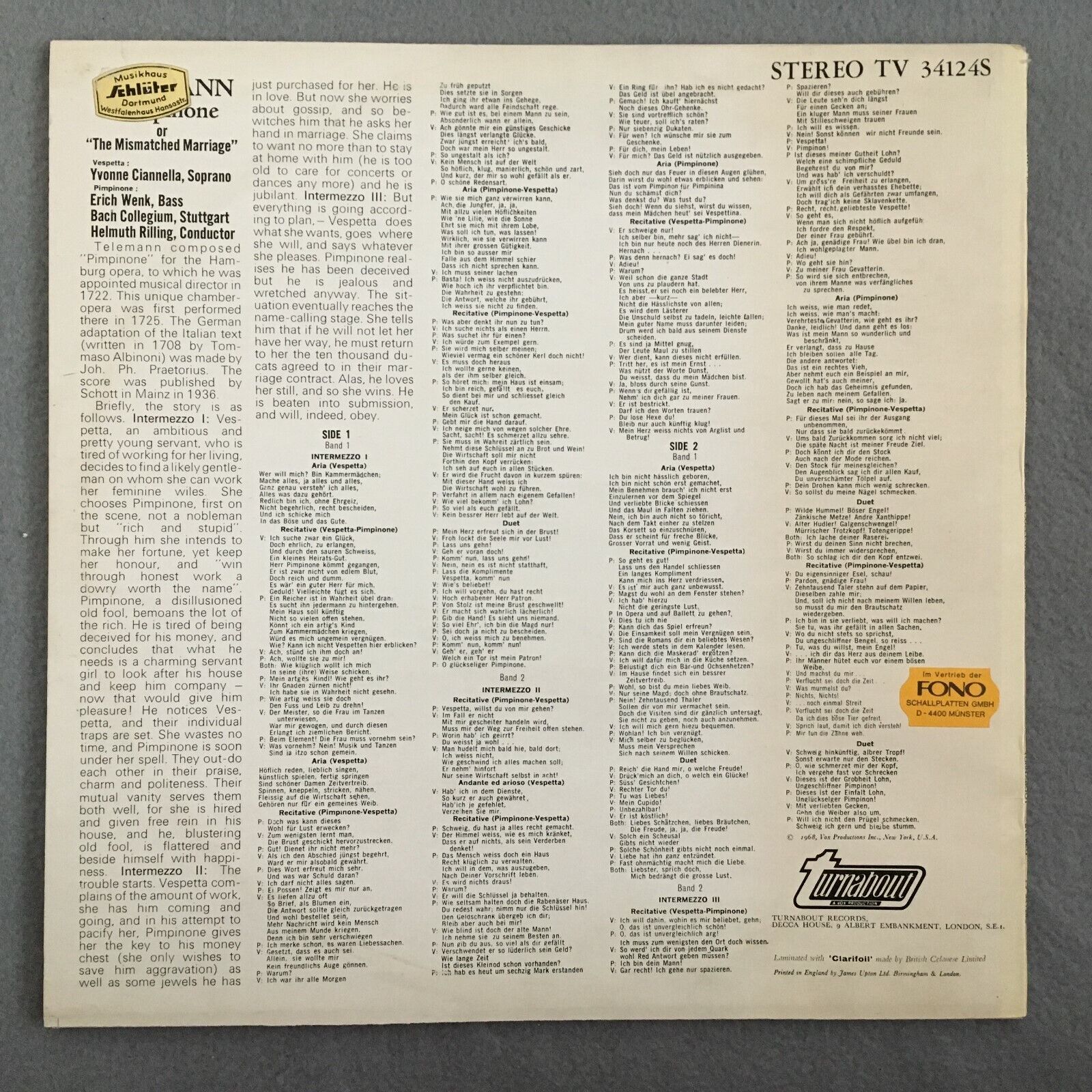 X295 Telemann Pimpinone Cianella Wenk Rilling Turnabout TV 34124 S Stereo