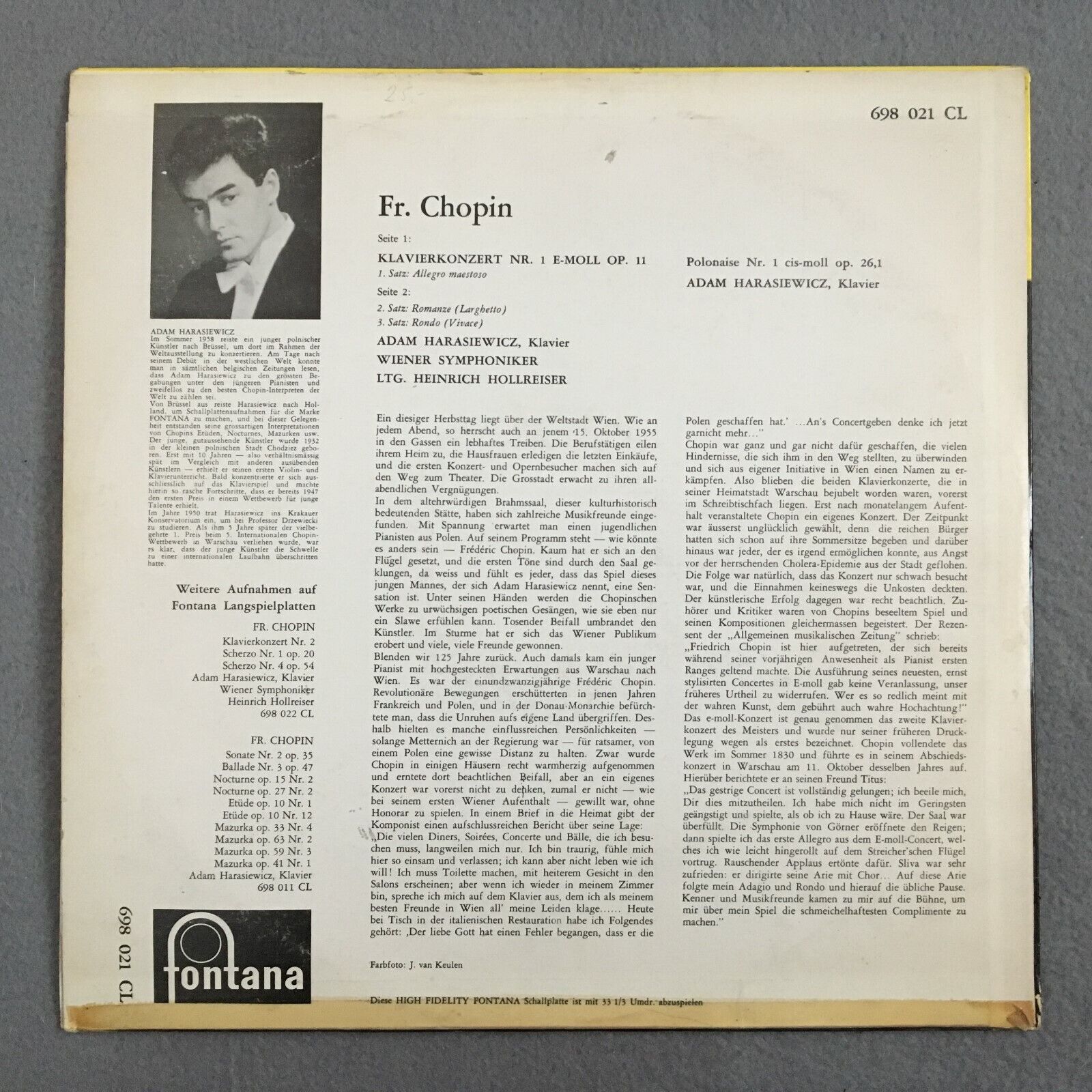 X326 Chopin Piano Concerto Harasiewicz Hollreiser VSO Fontana 698 021 CL Stereo
