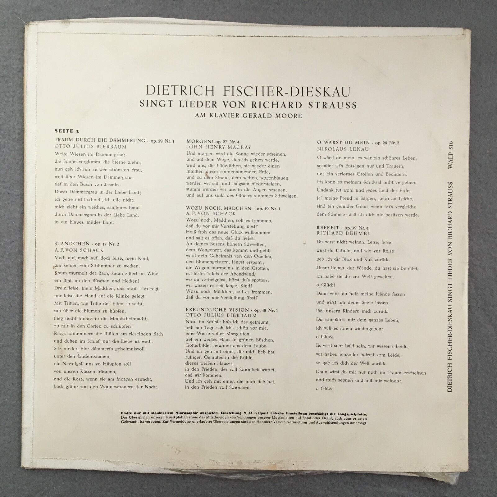 X335 R. Strauss Songs Fischer-Dieskau Moore/Piano HMV Electrola WALP 516